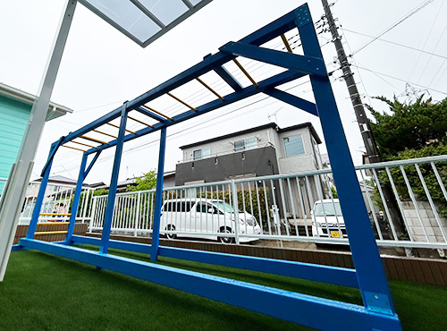 すっきりとした見た目に仕上がります。補強の骨組みでヤグラを組めば既存のお家にも施工可能!